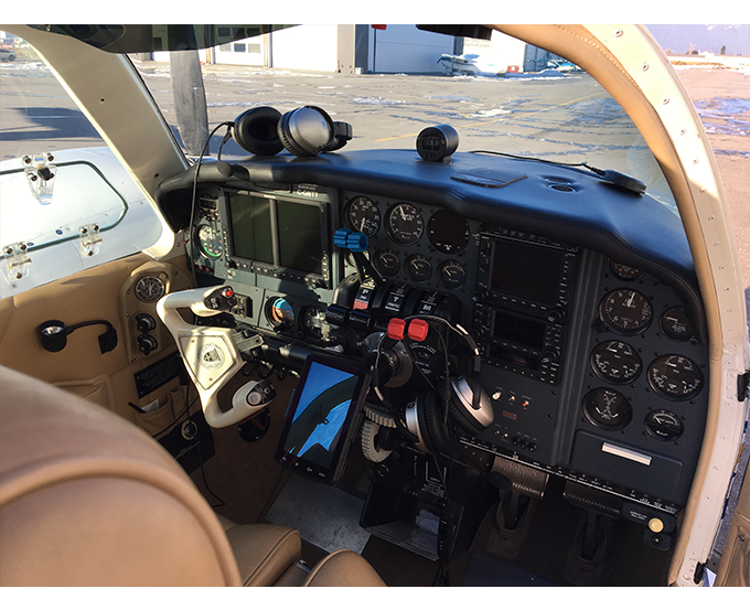 Long time friend and customer of Maxcraft, Dr. Milton Reskovich, recently upgraded his panel in his 1981 Beechcraft Baron. Milton had invested in a modern avionics suite years back in his Bonanza and was used to the IFR capabilities it provided. He went looking for something that had de-ice capabilities and found a cream puff Baron with low hours and beautiful “Air Mod” leather interior. Although a legal IFR machine it had less technology than his old airplane. In Dec. he decided to take advantage of some year-end promotions to upgrade his avionics and get rid of his less desirable wood grain panel. He now has very capable single pilot IFR machine with enhanced situational awareness and a superb looking panel to boot!