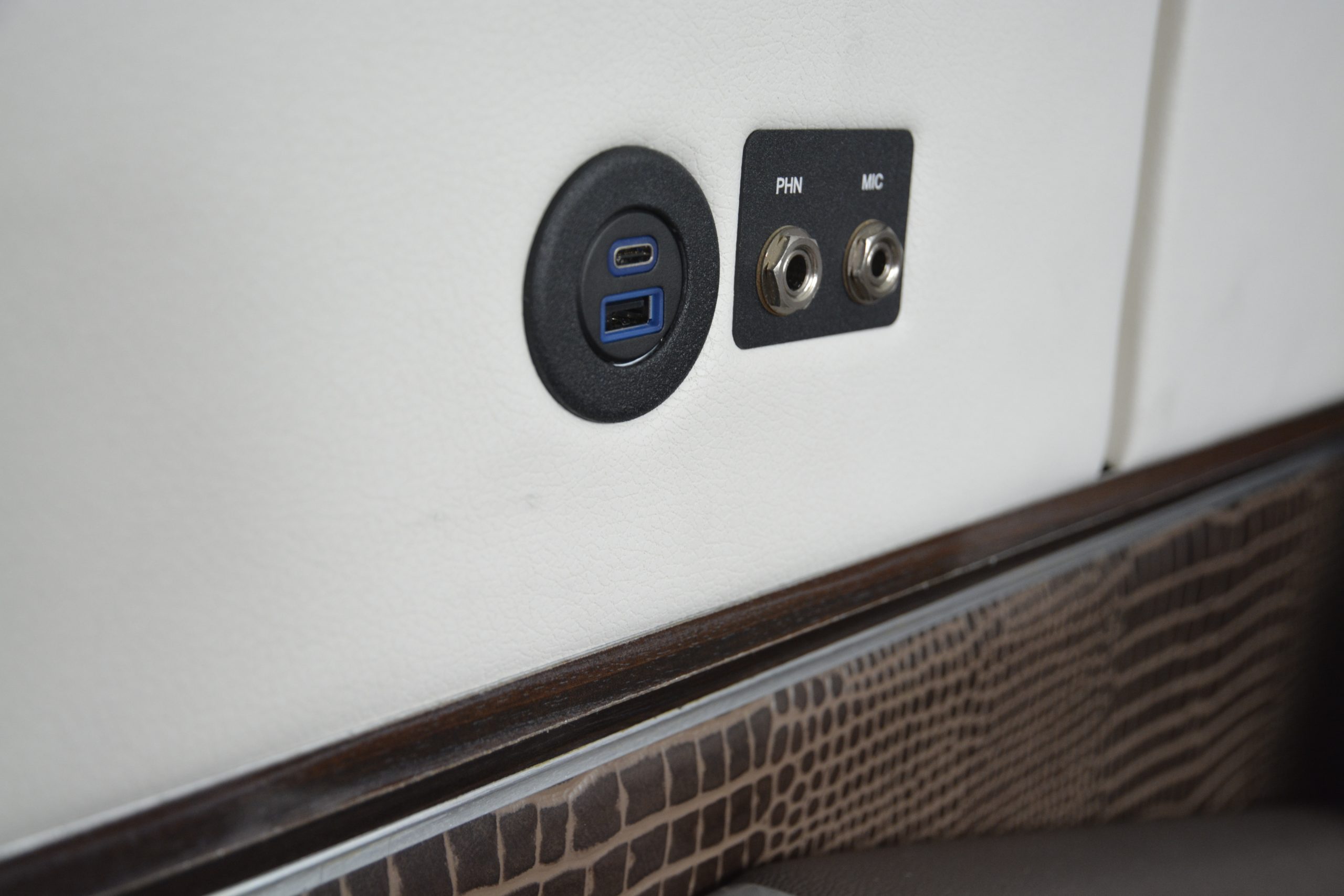 The GTN 750 Xi is also the control center for the remote mounted audio panel. With headset jacks throughout the aircraft, interested passengers will be able to don a headset and listen in on the pilots communications with each other, and air traffic control. Along with headset jacks, USB ports were scattered throughout the cabin allowing passengers to keep their devices charged on even the longest of legs. Charging ports on the instrument panel will keep the pilot’s electronic flight bags fully charged.