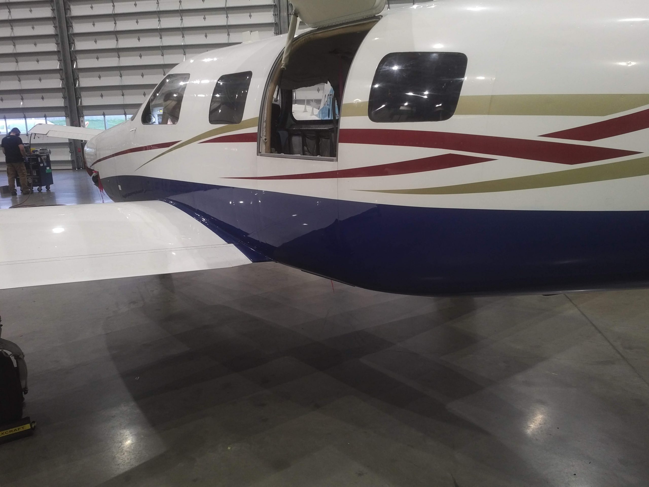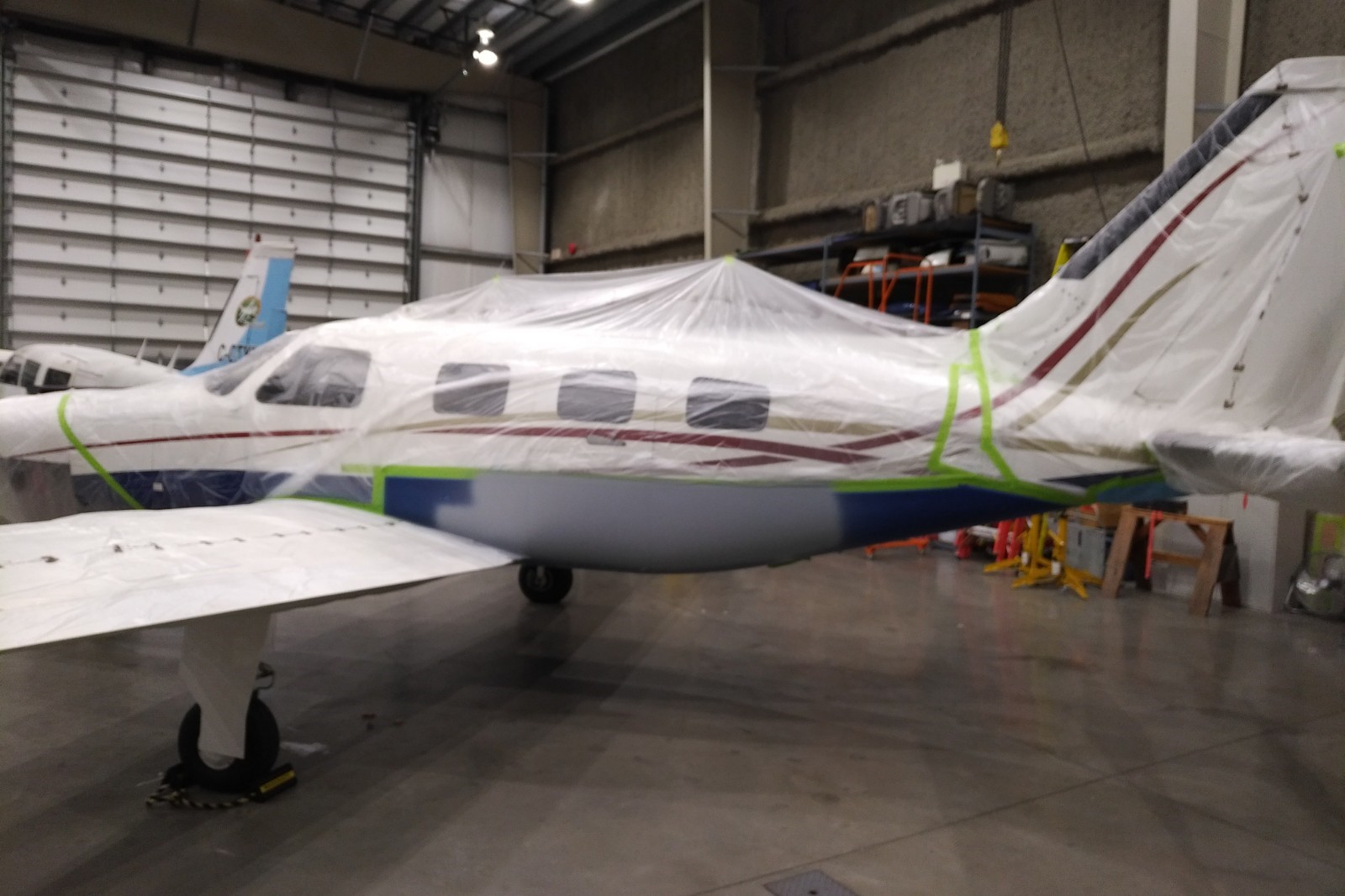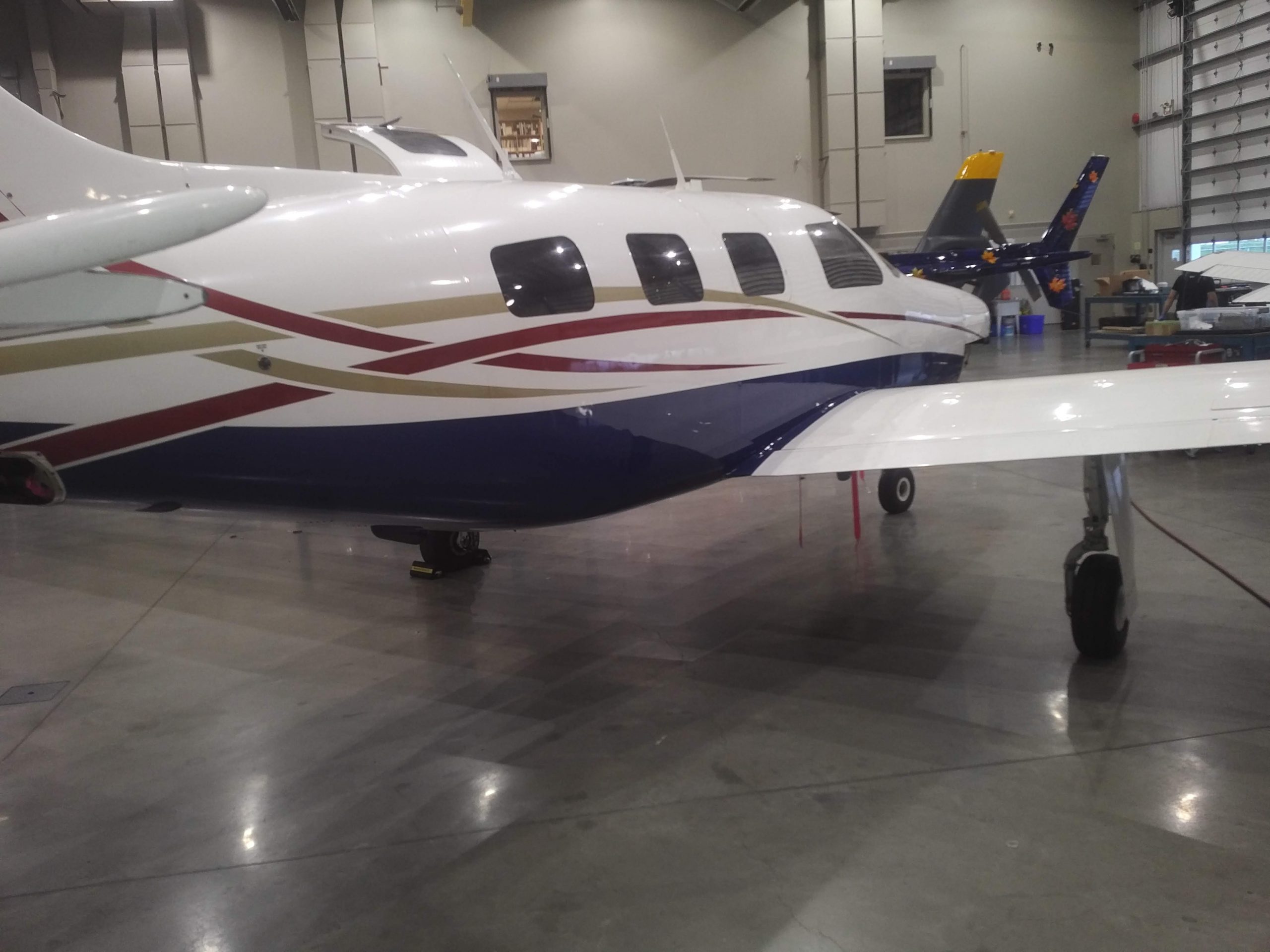 As the Malibu was being registered in Canada, we had to replace the old N tail number with the new Canadian registration. We arranged for a painter to come to our hangar to sand the old registration off, repaint the sides with a matching blue paint, then we applied vinyl decals with the new tail number from Transport Canada.