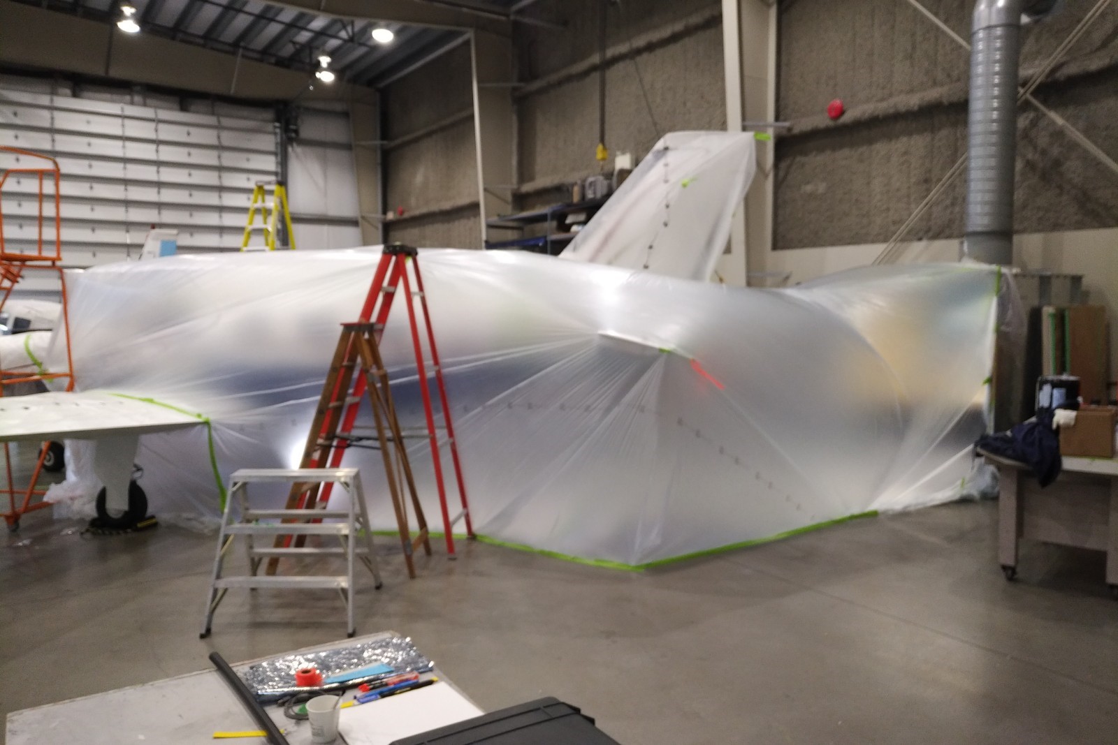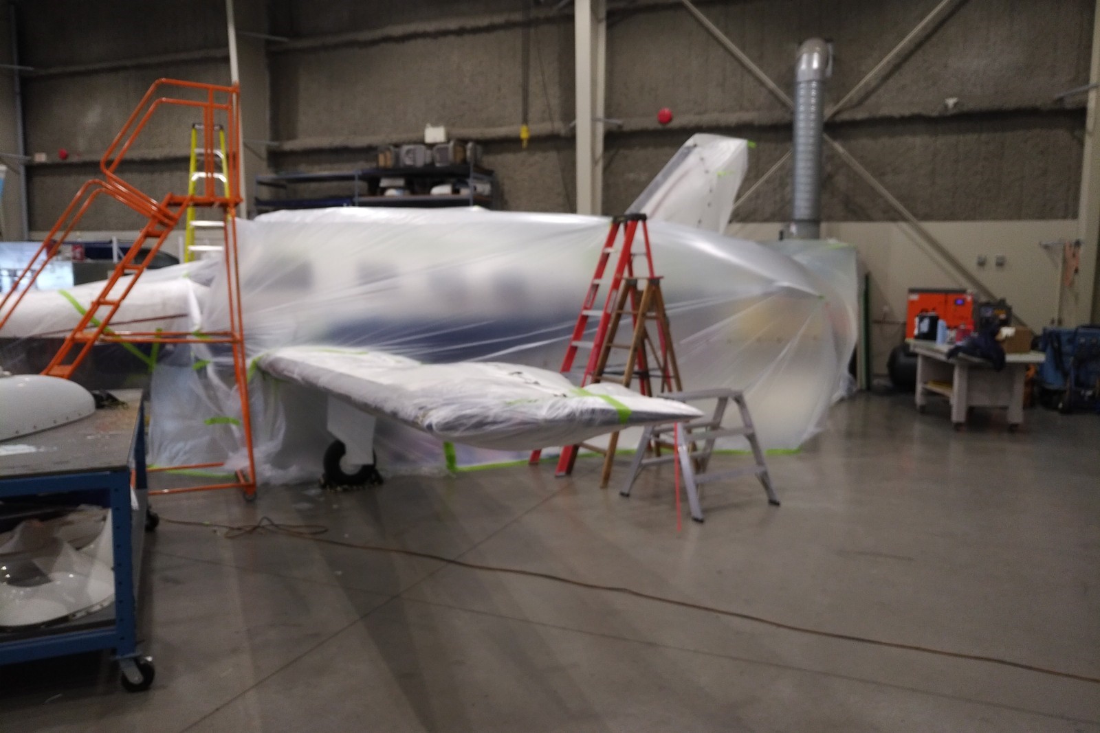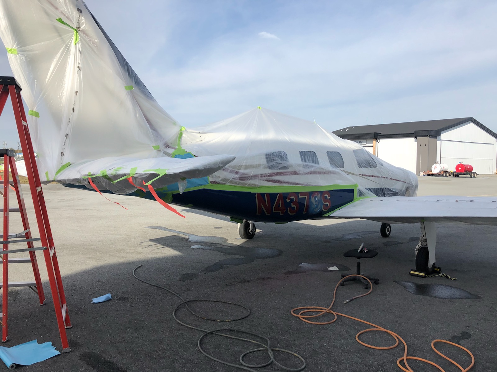 As the Malibu was being registered in Canada, we had to replace the old N tail number with the new Canadian registration. We arranged for a painter to come to our hangar to sand the old registration off, repaint the sides with a matching blue paint, then we applied vinyl decals with the new tail number from Transport Canada.