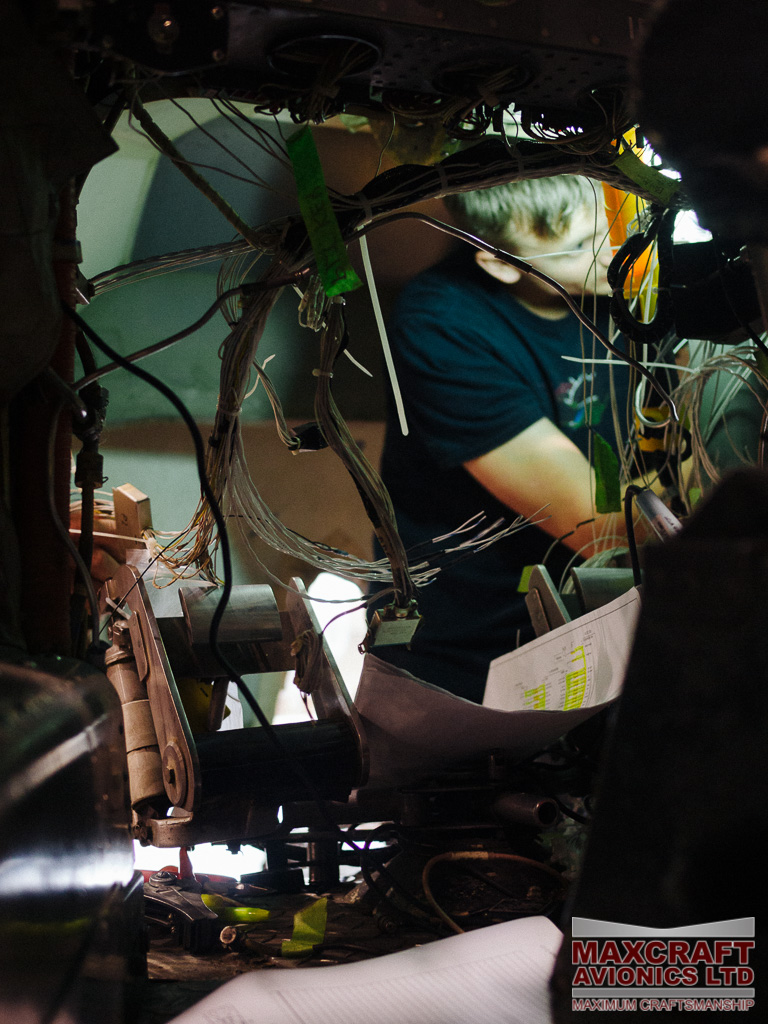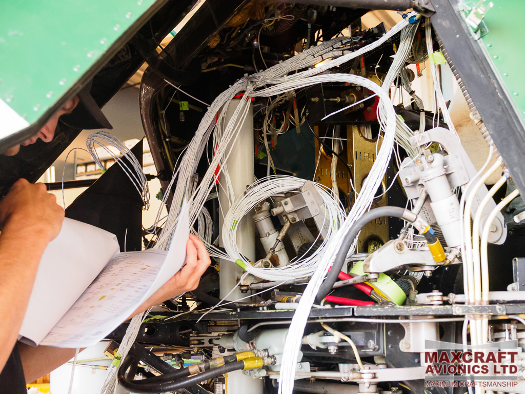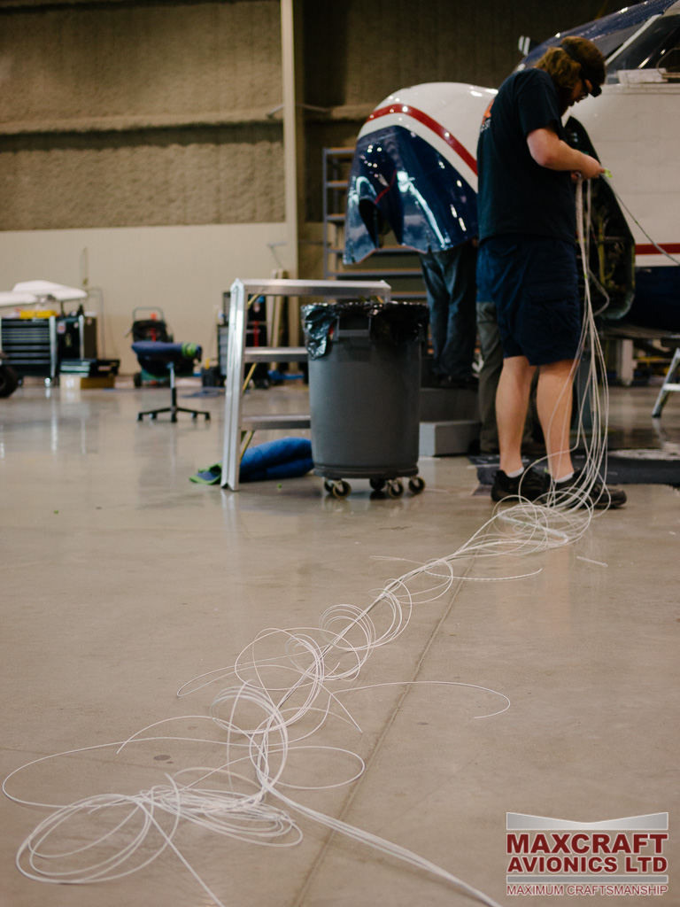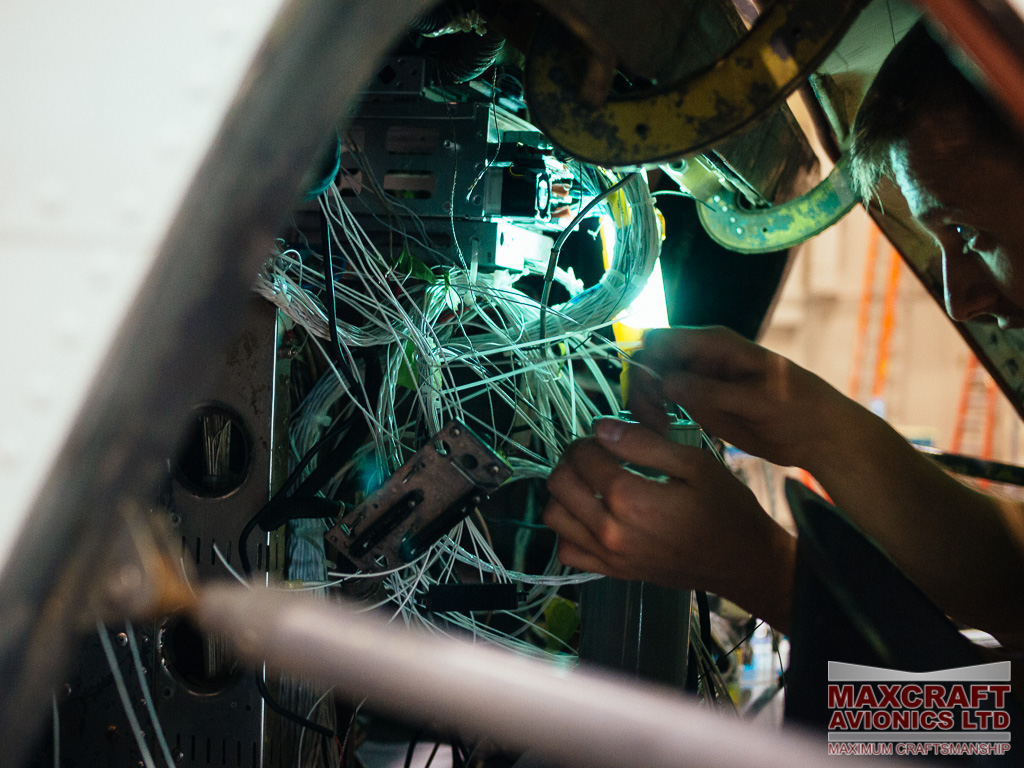In addition to a modern GTN 750 package with TCAS and a remote audio panel, Maxcraft technicians have also installed dual diversity mode transponders and a GNC-255 NAV/COMM, both of which were specified as mandatory for operation in Europe. While ES transponders have been mandatory in Europe for sometime now, the 8.33 MHZ channel spacing requirement which prompted a GNC-255 is fairly recent. Mission-specific equipment installed by Maxcraft include a custom-built jump light system, and a cabin altimeter.